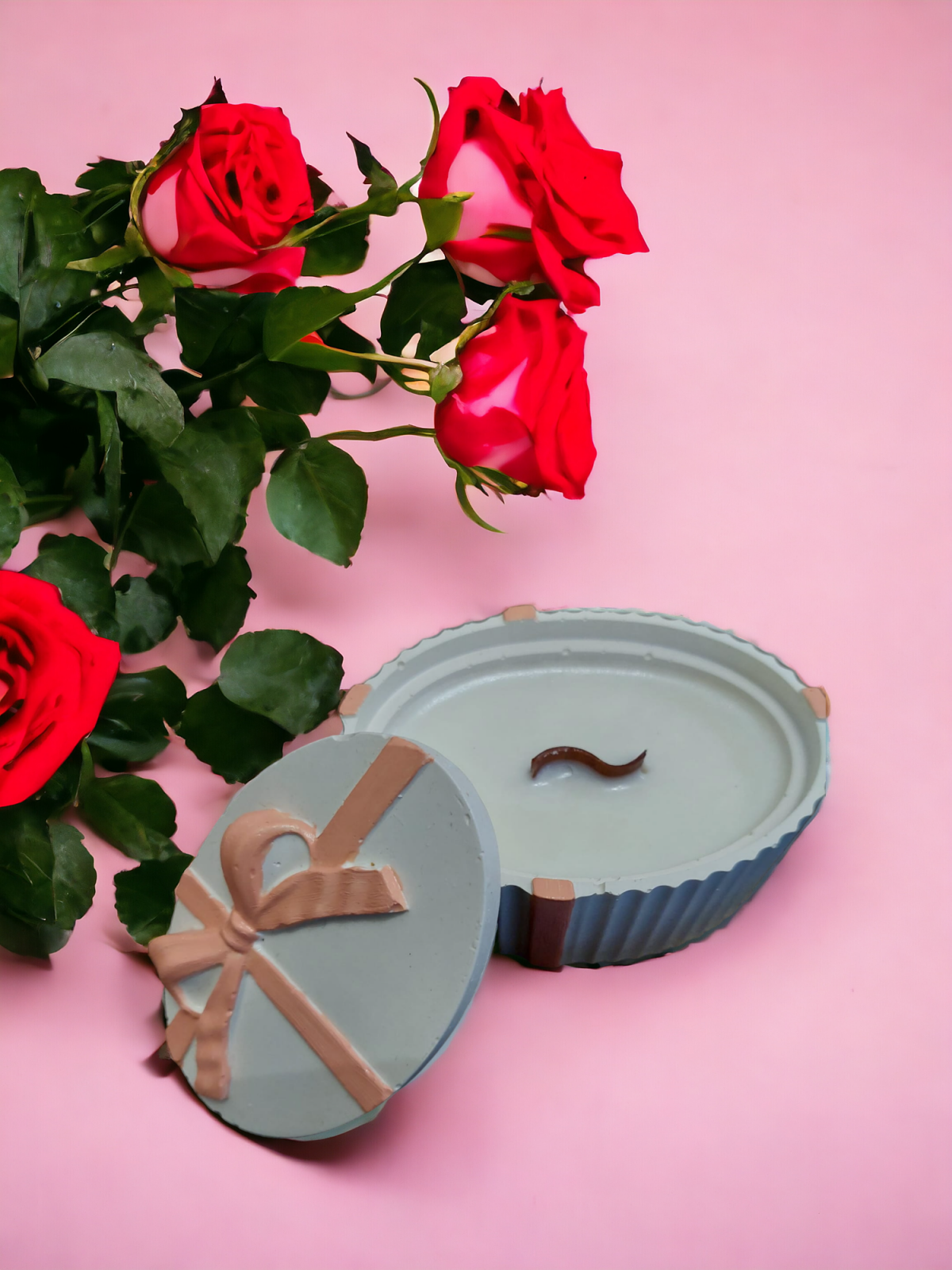 Recipientele folosite pentru această lumânare sunt turnate din praf ceramic și pregătite manual. Vasul este colorat cu pigment special pentru vase din praf ceramic și este sigilat cu verniș acrilic pe bază de apă. Pentru recipiente colorate, culoarea lor poate varia uneori, pozele prezentate sunt cu caracter orientativ.