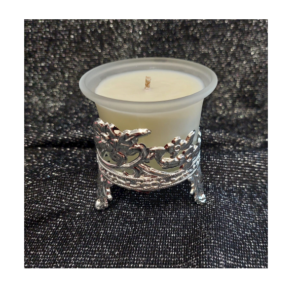 Lumânare parfumată în recipient din sticlă, tip candelă de masă