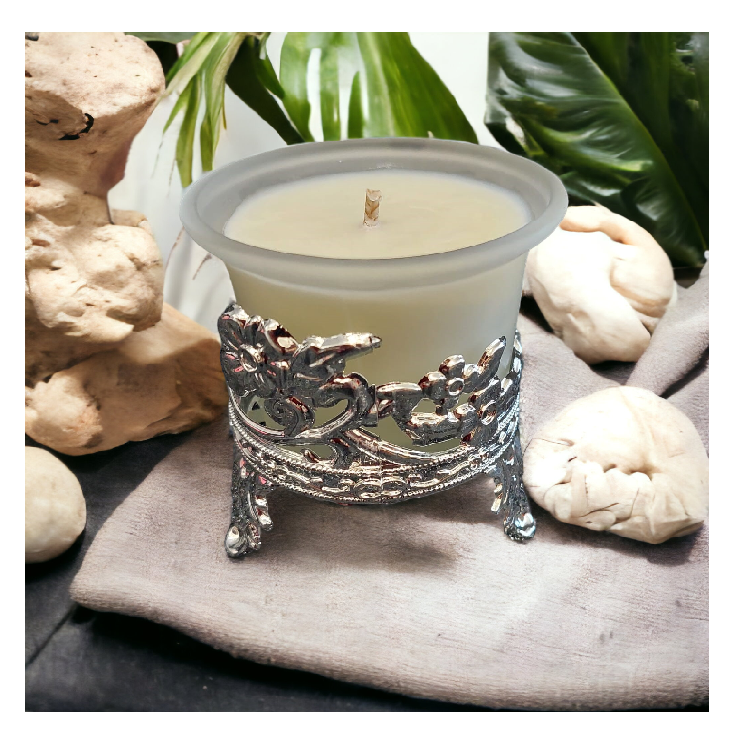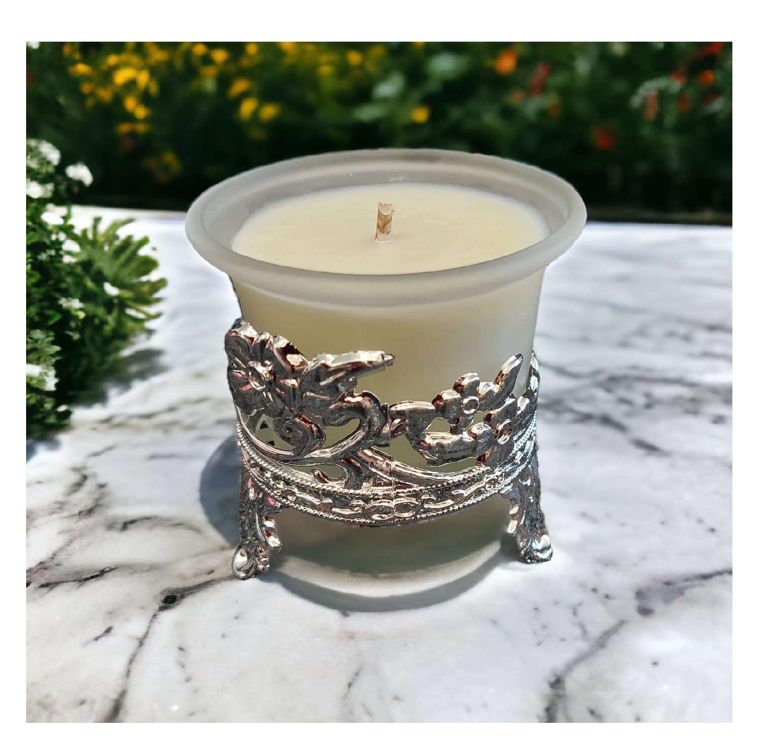 Aroma: Lumânare parfumată cu un parfum floral și opulent de crini albi și trandafiri. care se deschide cu aldehide proaspete urmate de nuanțe fructate de piersici și mandarină dulce, susținută de o inimă florală de trandafir de damasc, crin alb și note de ylang, floare de portocal și iasomie. Baza este compusă din chihlimbar bogat, mosc moale, vanilie cremoasă și tonka.